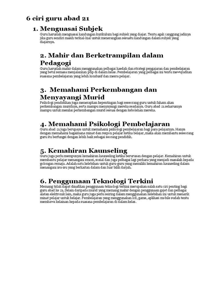 Dinamik perubahan masyarakat dunia dan ekonominya pada abad 21 memerlukan perspektif baharu dalam menangani alam hala tuju kerjaya dan dunia pekerjaan. Kemahiran komputer keupayaan untuk menggunakan computer dalam perkhidmatan kaunseling19. Mentransformasikan bilik darjah dengan ruang pembelajaran kreatif hasil usaha murid supaya menarik dan bermakna. 4 suasana atau iklim bilik darjah dapat merangsang murid untuk bersaing. Pembudayaan amalan komuniti pembelajaran profesional (plc).