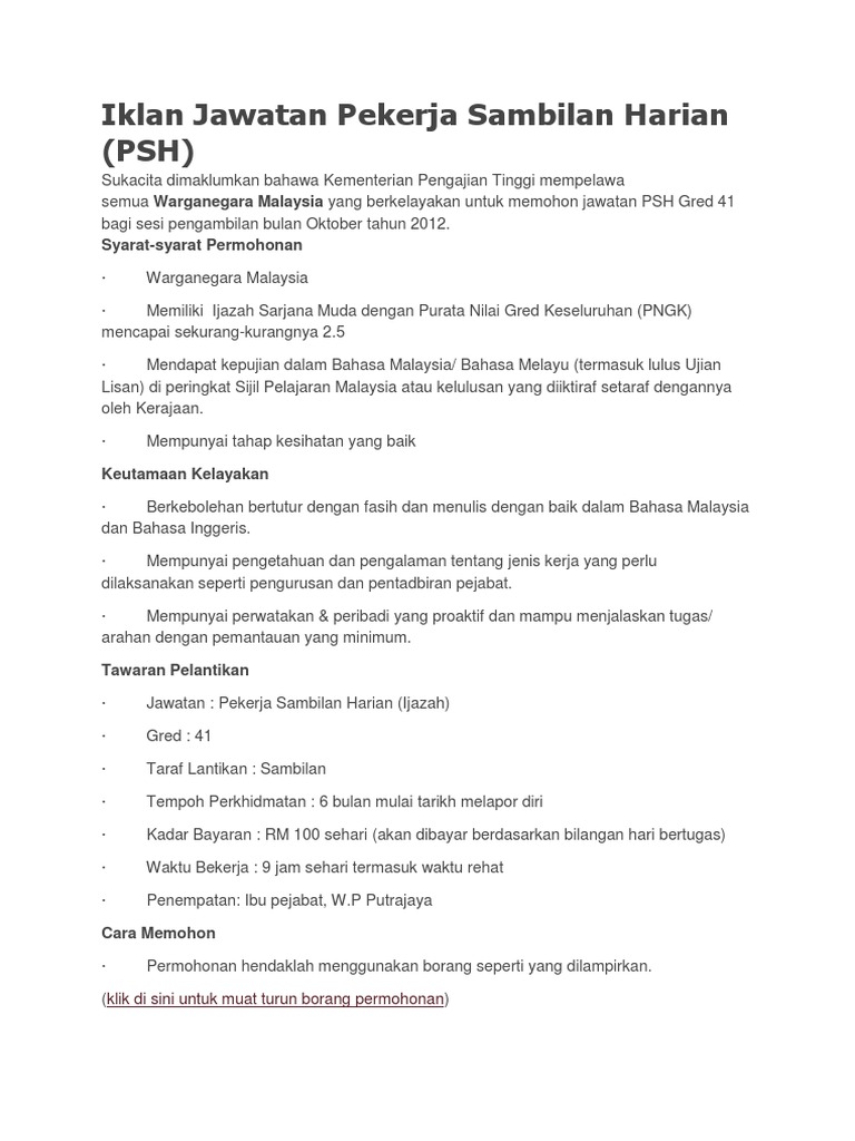 *setiap permohonan yang dihantar hendaklah ditanda pekerja sambilan harian. Cara memohon pekerja sambilan kpm. Calon harus lulus dari fakultas hukum di universitas terkemuka. Jawatan kosongjawatan kosong terkini pilihankerja kosong kerajaan. Pejabat ketua pendaftar mahkamah persekutuan malaysia, jabatan perdana menteri ingin mempelawa warganegara malaysia yang berkelayakan bagi mengisi segera kekosongan pekerja sambilan harian (psh). Jawatan kosong jabatan kemajuan islam malaysia (jakim via myadha.blogspot.com. Bila kamu punya pertanyaan seputar cara menghitung upah pekerja harian lepas sesuai peraturan di indonesia, mungkin artikel yang akan kami ulas kali ini akan bermanfaat. Matrade mempelawa warganegara malaysia yang berkelayakan dan berminat untuk memohon jawatan sebagai pekerja sambilan harian (psh). Find peluang kerjaya pekerja sambilan harian at putrajaya and related from jawatan kini. Temuduga terbuka pekerja sambilan pusat mel nasional via kerjaya.co. Puan lily marini binti hashim). Kementerian luar negeri, putrajaya : See more of gabungan pekerja sambilan harian malaysia on facebook.